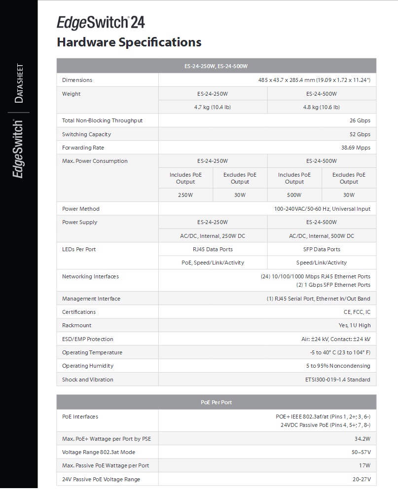 Switch Gigabit PoE 24 Port EdgeSwitch ES-24-500W