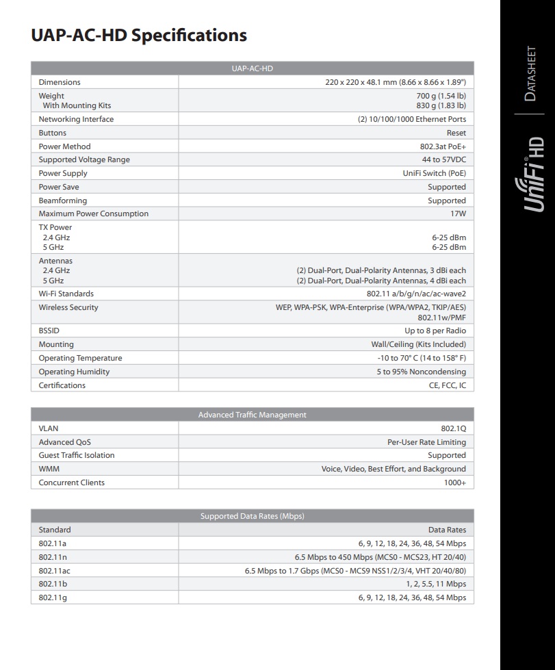 - Chuẩn wifi: 802.11 a/b/g/n/ac (với sóng 2.4GHz 800 Mbps và 5GHz 1733 Mbps)